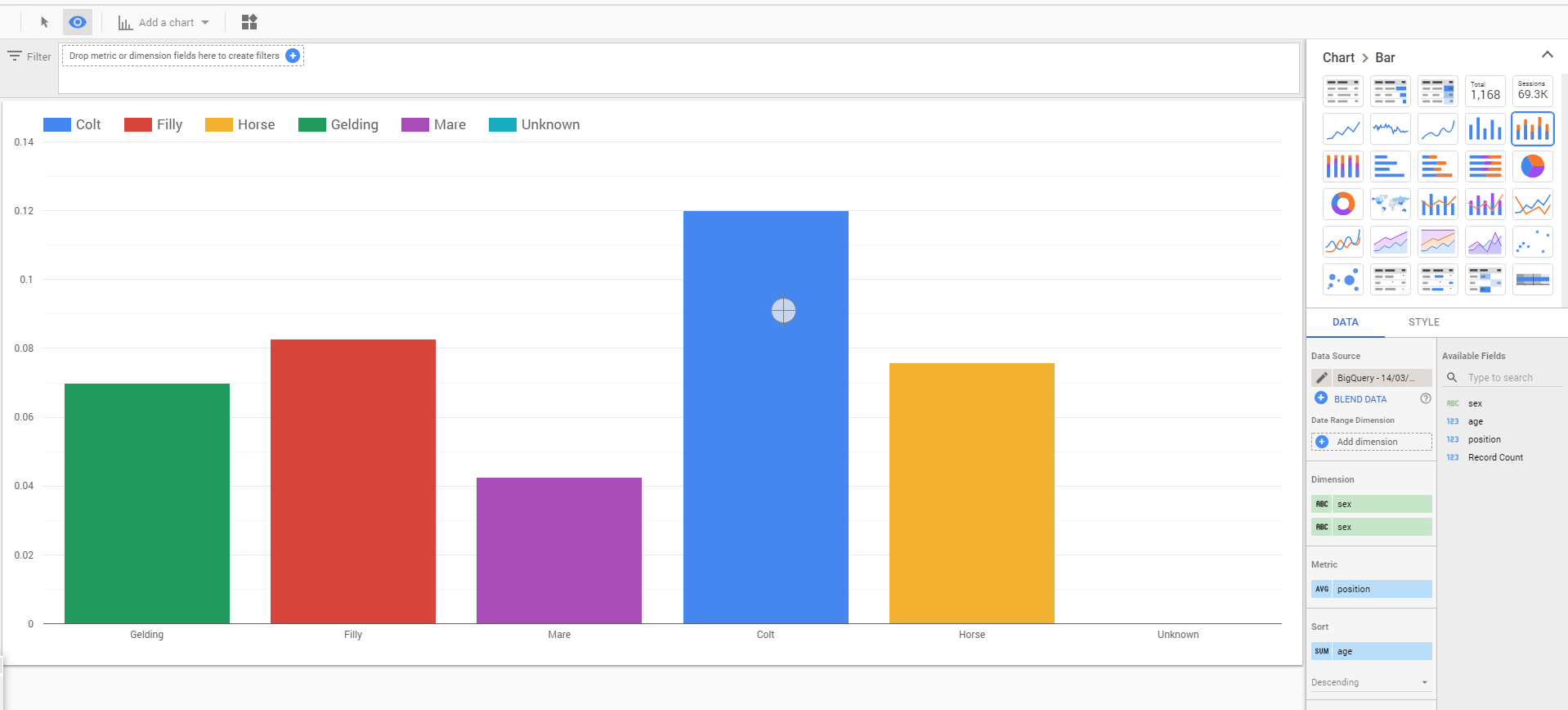 The end result should be a table that looks just like the original spreadsheet. Enter a Standard SQL Query in the console to try it out. In this dataset, the position value represents a horse’s finishing position in a race, which is what we want to predict.